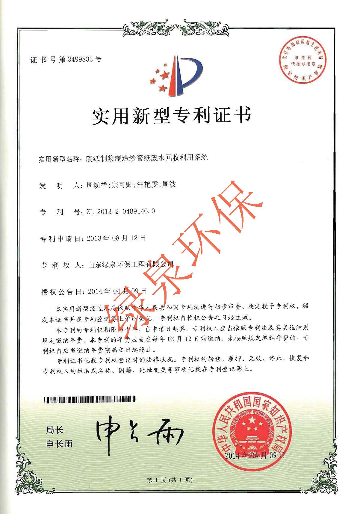 廢紙制漿制造紗管紙廢水回收利用系統(tǒng)