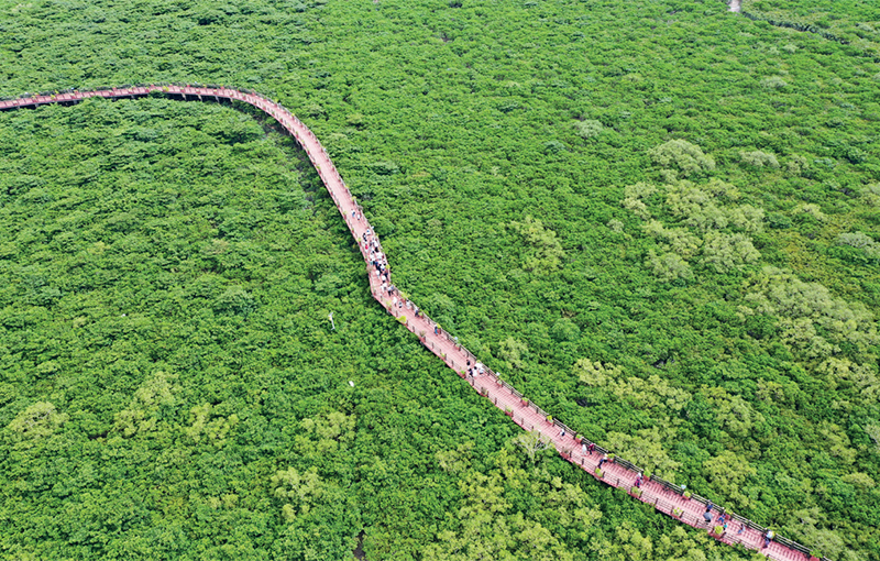 推動綠色發(fā)展,建設(shè)生態(tài)文明,重在建章立制。近年來,廣西北侖河口國家級自然保護區(qū)所在的廣西防城港市建立紅樹林精細(xì)“管、護、研”一體化工作機制,全面開展巡護管理、科研監(jiān)測、宣傳教育、社區(qū)共管、生態(tài)修復(fù)等各項工作,有效推動紅樹林生態(tài)系統(tǒng)質(zhì)量全面提升。圖為2024年8月24日拍攝的廣西北侖河口國家級自然保護區(qū)的紅樹林。 新華社記者 陸波岸/攝